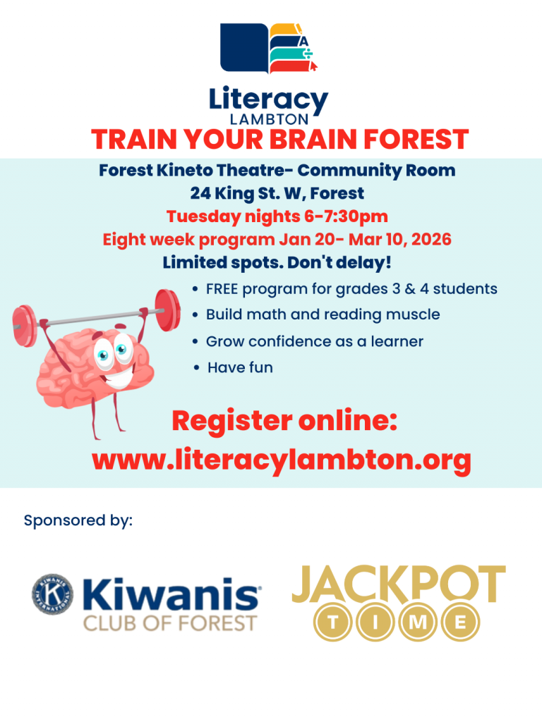 Forest Train Your Brain Registration Tuesday NightsJan 20 – Mar 106-7:30pmForest Kineto Theatre – Community Room24 King St. W. Registration will open at 9 am on December 15