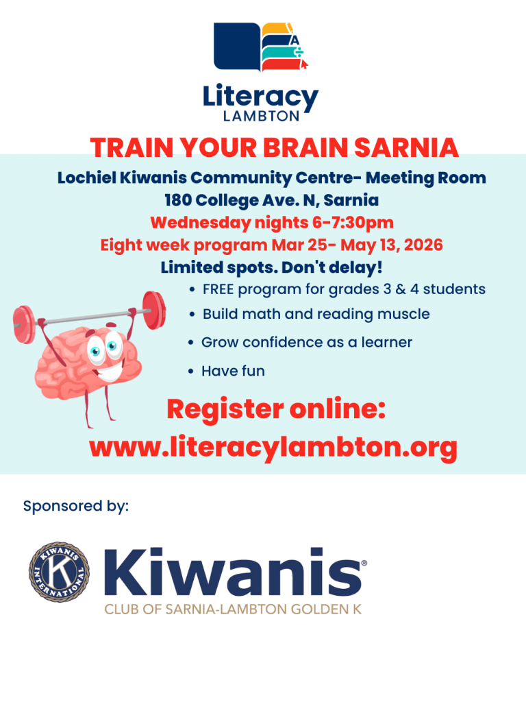 Sarnia Train Your Brain Registration Wednesday NightsMar 25 – May 136-7:30pmLochiel Kiwanis Community Centre Meeting Room180 College Ave N. Registration will open at 9 am on February 9th